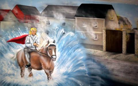Als das Feuer schon beim Anwesen mit der heutigen Hausnummer 35 war, kam ein junger Reiter ins Dorf geritten. Er trieb sein feuriges Ross an, und ritt immer wieder im Wechsel durch den Oberteich und das Flammenmeer. Danach stürmte er aus dem Ort und ward nie mehr gesehen. Zur Erinnerung an den Brand und den Wiederaufbau seines Hofes hat der damalige Besitzer des Anwesens in der Dorfstraße 26 eine Gedenktafel an seiner Hofmauer angebracht.